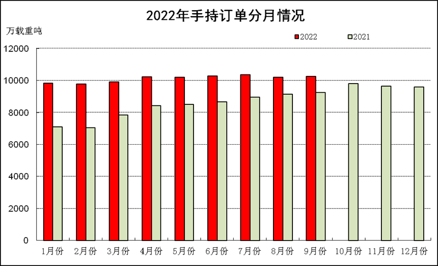 1-9月,我國造船完工量前10家企業(yè)集中度為68.1%,比2021年底下降1.2個百分點;新承接訂單量前10家企業(yè)集中度為67.9%,比2021年底下降1.4個百分點;手持訂單量前10家企業(yè)集中度為67.2%,比2021年底下降2.3個百分點。