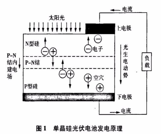 當一束光從太陽能電池板發射出來,光在邊界層被吸收,足夠能量的光子可以激發P-硅和N-硅共價鍵中的電子,形成電子-空穴對。靠近邊界層的電子和空穴被空間電荷的電場相互分離,然后重新結合。電子進入正電壓區N,空穴進入負電壓區P。電荷在邊界層上的分離在P和H區之間產生了一個可測試的電壓。在這一點上,可以添加電極,并在硅片的兩側打開一個電壓表。對于石英硅太陽能組件,開路電壓通常為0.5-0.6V。邊界層中由光產生的電子孔比電流更重要。邊界層吸收的光能越多,邊界層面積就越大,即太陽能得到的電池電流就越多。